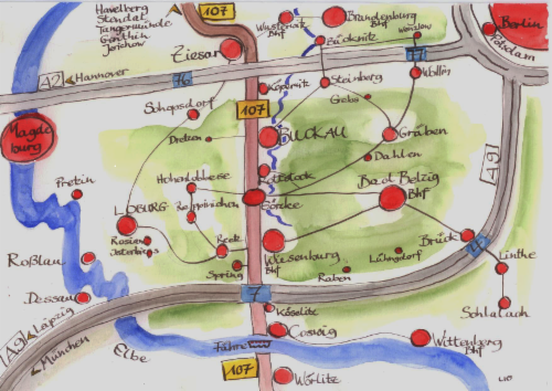 und auf ebenso vielen Wegen können Sie von Buckau aus